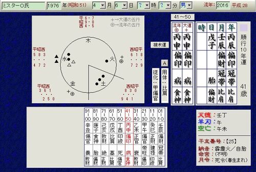 昨日、記者会見を行ったO氏の運気を看てみます。 戊子:大衆的で純心、サッパリした性格でアクの強さは有りません。負けん気は強いが、見た目より気が小さいところがあります。 月柱:偏財冠帯比肩。冠帯が年上にもあり二つなので、けっこう強気で頭も良い…