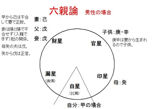 四柱推命では、比肩星は自分を表し、財星は妻や妾、父親を表し、官星は子供を意味し、印星は母、継母、祖母を意味すると言いますが、六親論(りくしんろん)から関係性を説明いたします。 自分(男性)が甲の場合、甲から己は干合して正財で妻となります。妾…